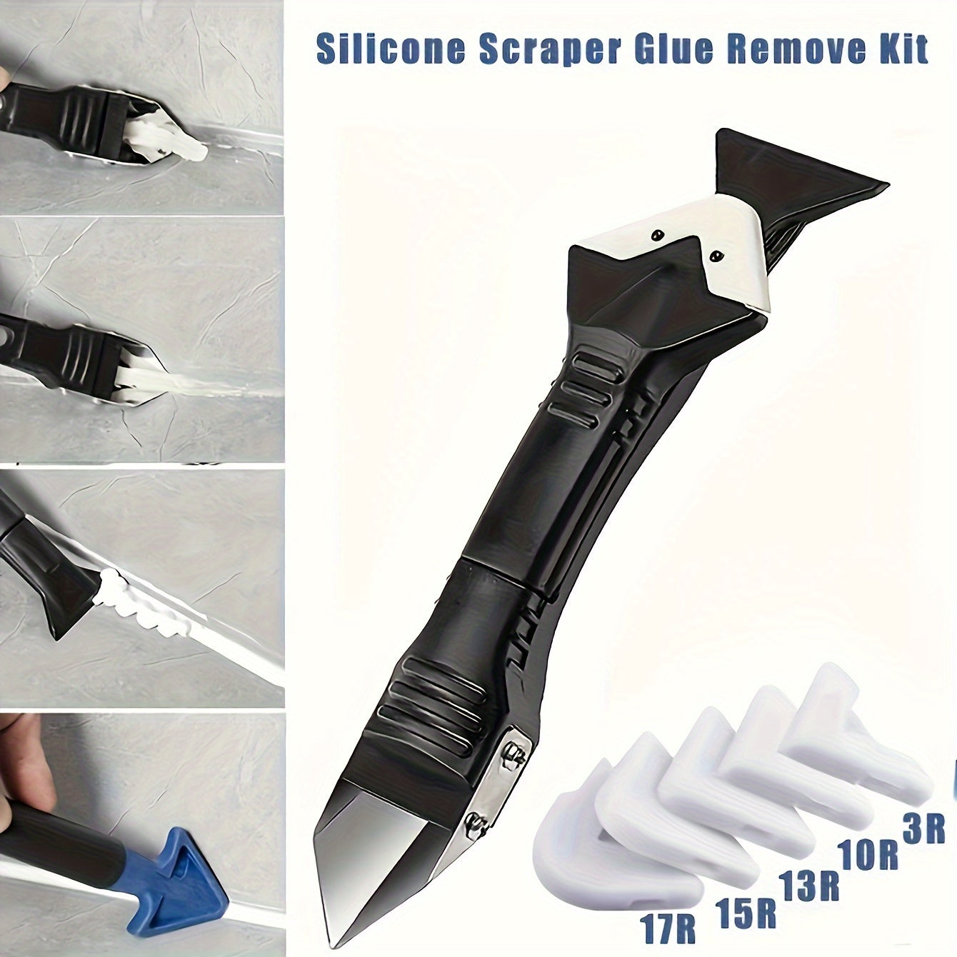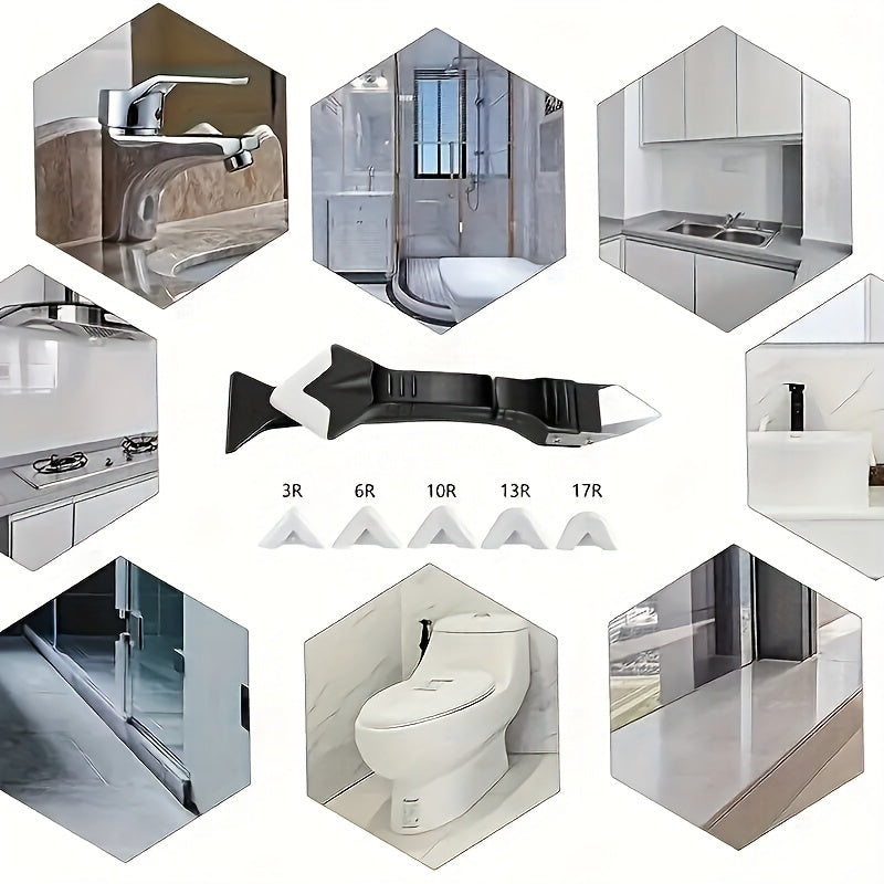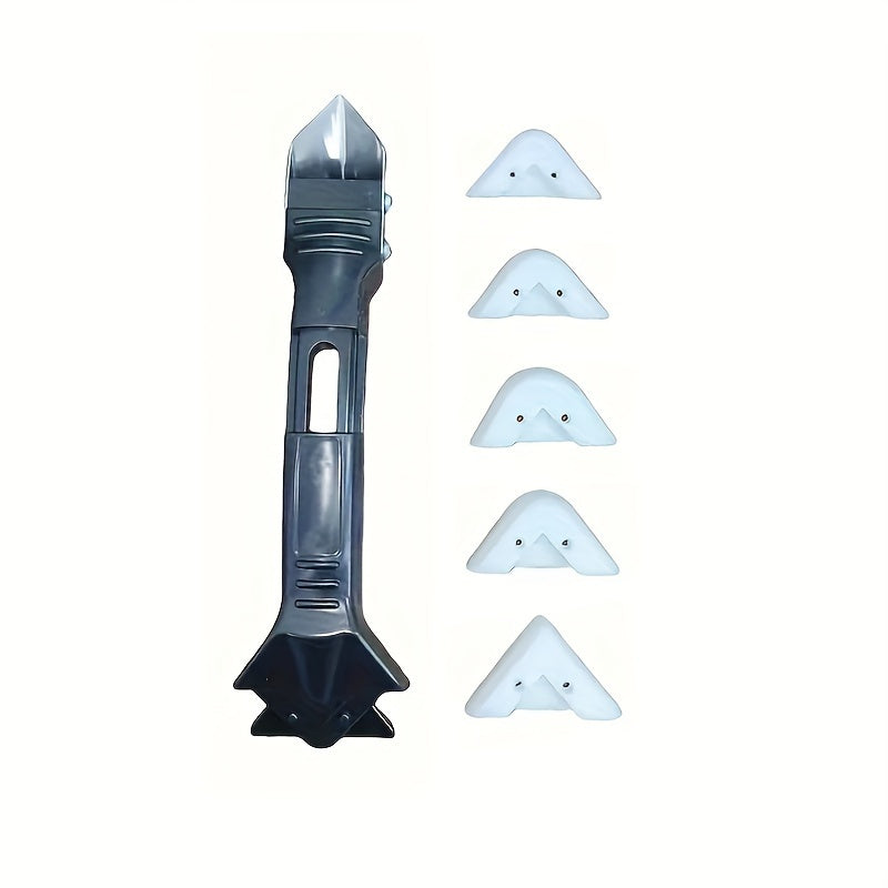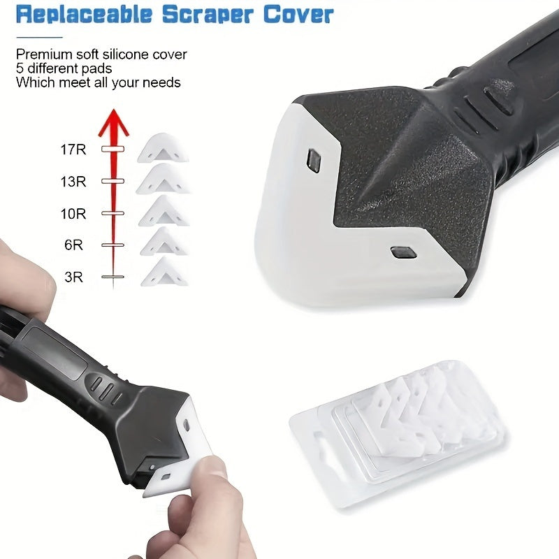 3 Sets, 5-in-1 Multi-Functional Silicone Cleaning Scraper Tool - Grout, Glue, Caulk, Glass, and Sticker Remover for Living Room, Cars, Windows, Cooktops - 5 Replaceable Heads Included